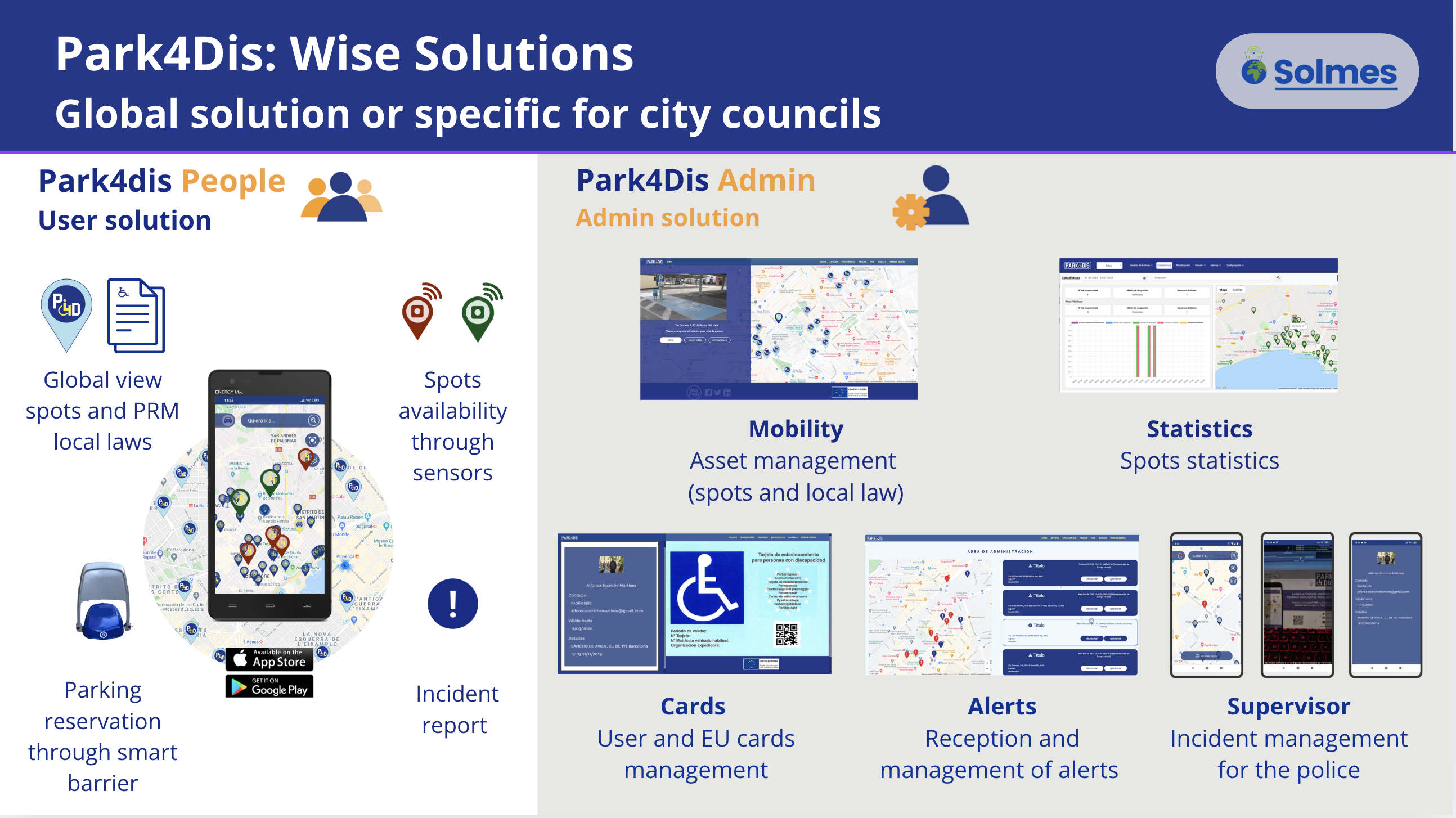 Park4Dis responde a estas problemáticas ofreciendo una plataforma tecnológica que unifica la gestión y acceso al estacionamiento PMR, permitiendo a los usuarios planificar sus desplazamientos sin barreras y mejorando la eficiencia en la gestión de la movilidad urbana.