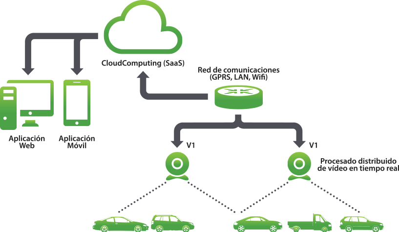 - Rentabilización de la inversión en infraestructura de cámaras para vigilancia del tráfico urbano y/o seguridad. Con una cámara se pueden cubrir hasta 50 plazas según el escenario y la disposición de la cámara y es un sistema más rentable que poner 50 sensores.